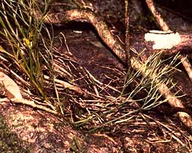 grass-like leaves. Stylites was only discovered in 1957 in the Andes. It is an a swamp-dwelling plant with no stomata, taking in CO2 through its roots! Isoetes is more widespread. |
