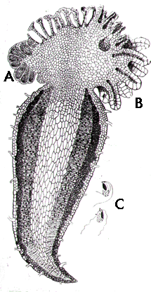 develops initially as a parasite on the gametophyte. A = antheridia |
