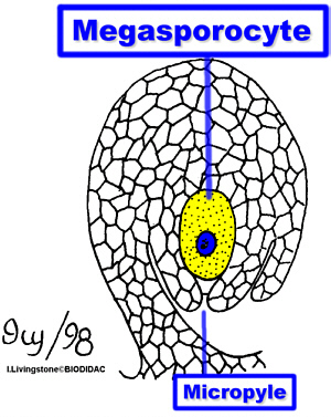 called the Nucellus.The Megasporocyte produces four haploid Megaspores. Three of these