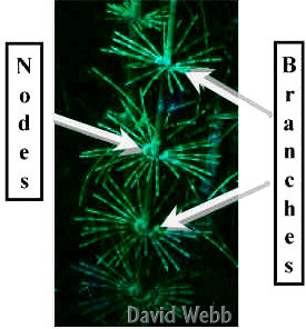 surrounds the stem & extends a cm. or two above each node. Each tip represents one