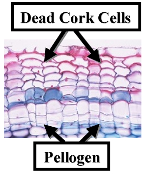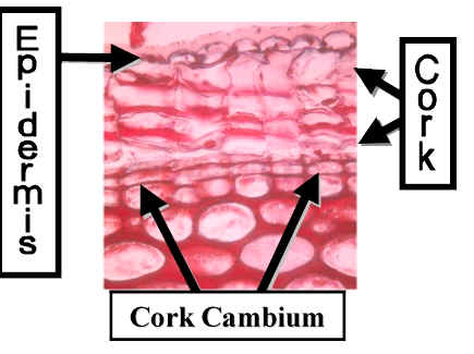 stem or root. The suberized-lignified Cork Cell walls retain their shape.