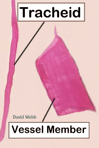 Tracheids provide good structural support and fair water conduction. Vessel Members provide superior transport but inferior support. They have large openings in