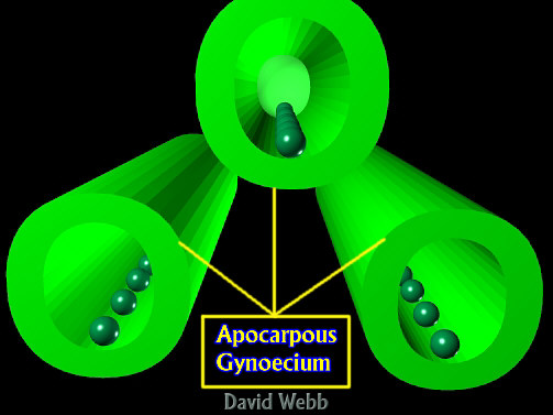 The figure below shows longitudinal views of two members of the Solanaceae. These share many traits, and are typical Syncarpus flowers. The Gynoecium is composed of several fused carpels (Syncarpous).