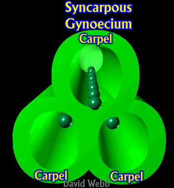 Syncarpous Gynoecium: The word Syncarpous means Fused Carpels. Obviously, a syncarpous gynoecium must have two or more carpels!!!!! These can be fused at their margins creating one Locule or three closed carpels can be fused creating several Locules.