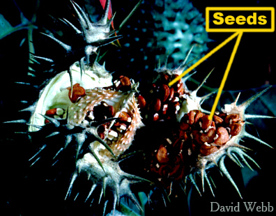 ![]() Immature Milkweed Fruits: Seeds can be seen in the open fruit on the left. |