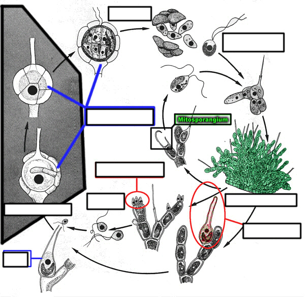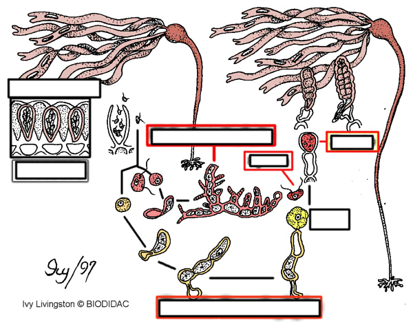 29] Label the Boxes in the Life Cycle below [Clearly indicate where Meiosis Occurs].
