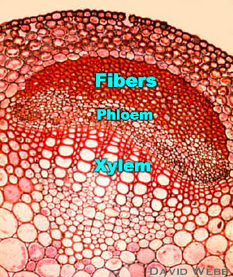 also contain Bundles of Fibers. These are usually associated with the Phloem and may be called