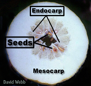 Exoxarp, Mesocarp and Endocarp. The Ovaries can be superior or inferior. Those with Inferior Ovaries may be called "False Berries"