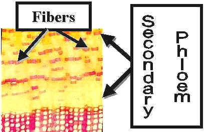 The Secondary Phloem of Podocarpus is very similar to that of Pinus. However, it has Fibers distributed in the Phloem