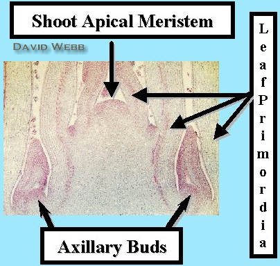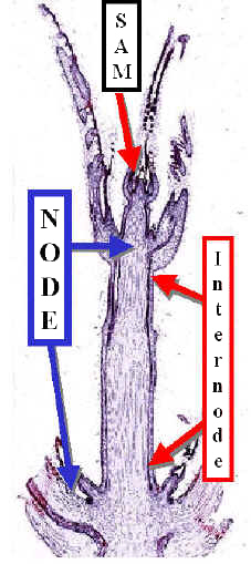 from the SAM, internodal elongation begins.  Shoot Apex of Forsythia.