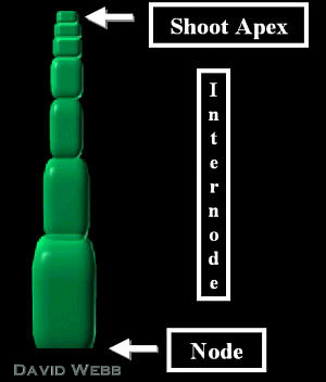 Cells at the base of the Internode (the Node) continue to divide and produce cells towards the Apex.