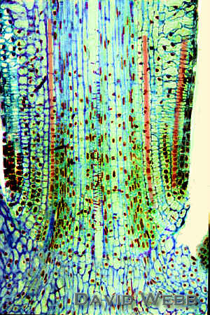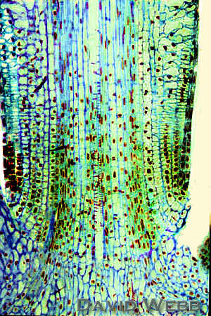 This Image is the same as above but it represents many cell files. This would be extremely awkward and dangerously weak if the cells retained this morphology after they have matured. Once the meristematic activity of the cells in the Intercalary meristem ceases, they enlarge and form a columnar Internodal. |