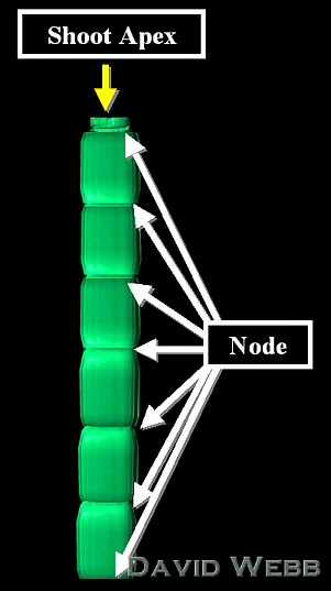 Note that the cells get smaller towards the Node. This could not occur in a stem with Apical Growth.