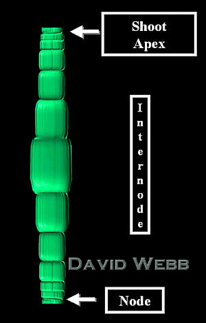 Thus a zone of differentiated cells lies between two meristems, one at the Apex and one at the Node.