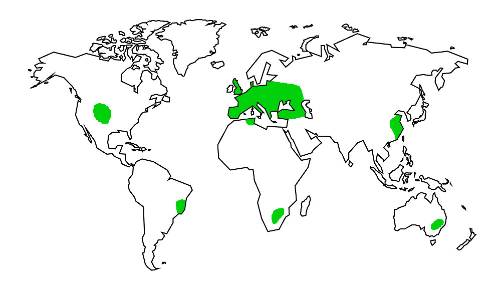 France (300000 ha), ex-USSR (250000 ha), Australia (160000 ha), Portugal