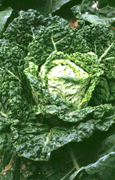 Vorläufer des Wirsings mit gekrausten Blättern, die den Strunk