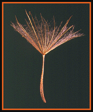 | Like an endless army of parachutists released from an airplane, seeds and fruits travel the wind currents and gentle breezes of the earth, possibly colonizing a distant mountain slope or fertile valley. Literally hundreds of species in many plant families have adopted this remarkable method of dispersal, including a variety of ubiquitous plants that we recognize as "weeds." The answer to why some weedy composites (such as the European dandelion) have worldwide distributions is truly "blowing in the wind" (to quote from the Peter, Paul and Mary song). Some of the ingenious adaptations for this method of wind dispersal include seeds that resemble parachutes, helicopters and gliders. In fact, one species (see opening photo) reportedly inspired the design of some early aircraft. An astronomer friend of Mr. Wolffia once observed a strange formation of flying objects through his telescope. He was focusing on a squadron of tiny parachute seeds high above his house. And the entire plant body of wolffia (the world's smallest flowering plant) may be transported by powerful cyclonic storms! In the southeastern United States there are records of wolffia plant bodies less than one millimeter long being carried by a tornado, and they have even been reported in the water of melted hailstones! |